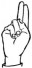На ћирилици написано ИВА ДОРОНТИЋ састоји се из 11 слова [?]. Исписано ћириличном једноручном азбуком за глувонеме: